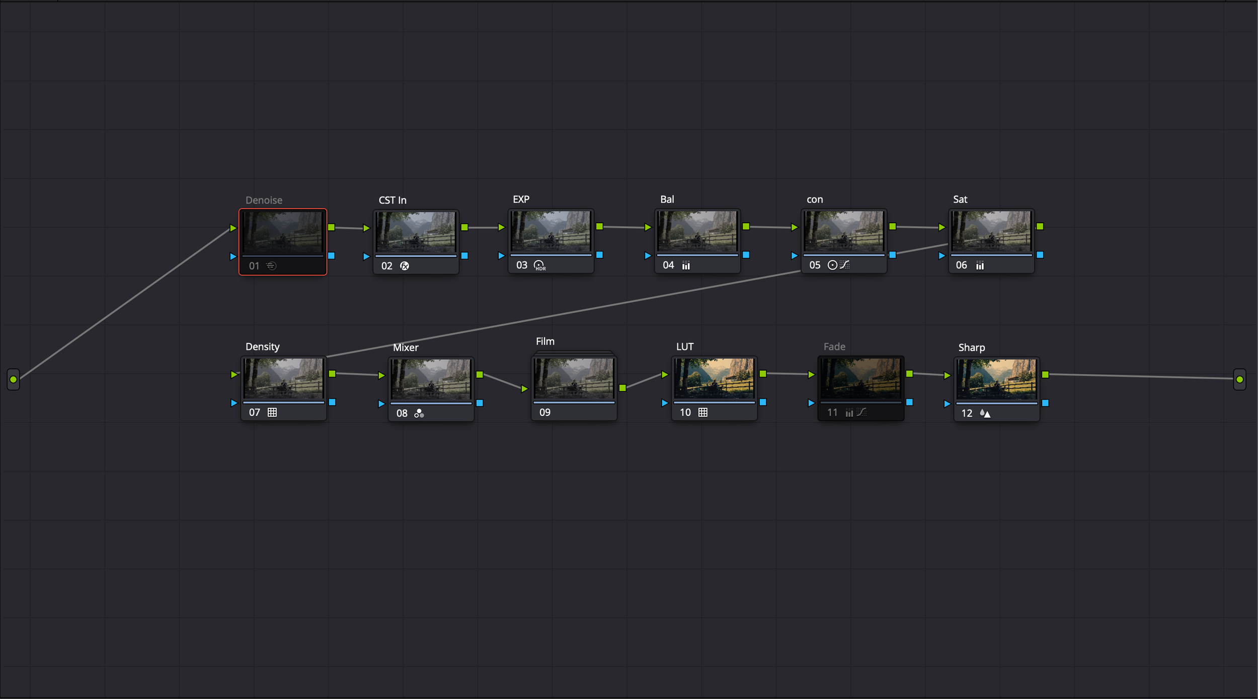 Inside the compound node you’ll find your film emulation essentials already set up and ready to go. Obviously you can customize them to your own preference just as easily.